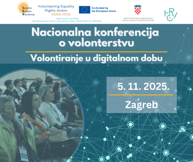 Hrvatski centar za razvoj volonterstva najavljuje ovogodišnju nacionalnu konferenciju o volonterstvu pod nazivom „Volontiranje u digitalnom dobu”, u srijedu, 5. studenoga u Zagrebu. Prijave za sudjelovanje bit će otvorene od
